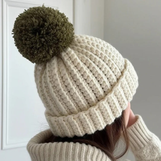 Soft Cream Pom Beanie Crochet Pattern (PDF Download)